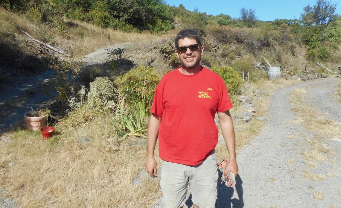 クロ・ファンティーヌは兄弟3人で営むドメーヌです。お姉さんのキャロルはドメーヌ全般のことを、真ん中の弟オリヴィエは畑仕事、末っ子の妹コリーヌは醸造をメインに。1997年に亡くなった彼らのお父さんが亡くなってから、三人三脚でドメーヌを切り盛りしてきました。3人で支え合いながら日々進化しつづけています。クロ・ファンティーヌのワインは、何よりも美しいストラクチャー(骨格)を感じさせてくれるワインです。一面シストと呼ばれる鋭い石で覆われた畑。ワインに骨格や後味のフレッシュさを与えてくれる類稀な素晴らしい土壌です。彼らの畑は私たちが見てきた多くの畑の中でも、群を抜いて印象的な畑です。トラクターを入れない畑はモグラや蟻が縦横無尽に土の中を走り回り、自然の耕作をしてくれています。ブドウの樹と樹の間に伸びた蜘蛛の巣も壊さないよう、畑を歩く時は蜘蛛の巣を避けて歩きます。化学肥料は一切撒かず、2015年に廃カビ病が猛威を振るう前までは18年間もの間、ボルドー液すらも使っていませんでした。硫黄も本当に必要な時に一部の畑に少しだけ撒くくらいです。ブドウの根が隣りの草木の根と地中の中で繫がり、その隣りのブドウの樹の根と繫がり、畑全ての根が地中の中で繫がりあうことによって、畑全体の微生物が活性化され、畑全体が大きな自然の一部としてエネルギーに満ちていくことを大切にしています。長年トラクターを入れていない畑は自然のままの起伏が生み出され、それは地層ができていく過程と同じように大切なことだと教えてくれました。ブドウの樹がなぜ実るのか。生命として次の時代に種を残すために生まれる...その神秘的なエネルギーが一番輝く状態でブドウを収穫し、ワインにそのエネルギーがしっかり込められたワインを届けたいんだとオリヴィエ。醸造においても畑仕事同様の哲学を大切にしています。ブドウの浸漬の間もタンクの中の微生物の生態系を壊さないように、攪拌などすることは一切ありません。発酵が円滑な場所、そうじゃない場所、それぞれが存在し、自然界と同じようにすべてが相互作用しあってワインが生み出されるとコリーヌ。ワインとは何だろう?ナチュラルワインとは?その答えの一つがクロ・ファンティーヌのワインを通してしっかり伝わってくる、二番通り酒店の鉄板でワインです。