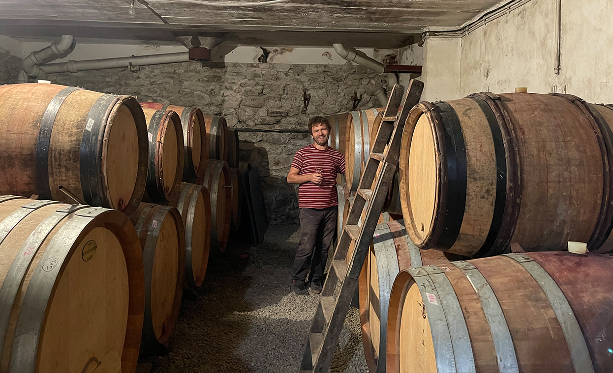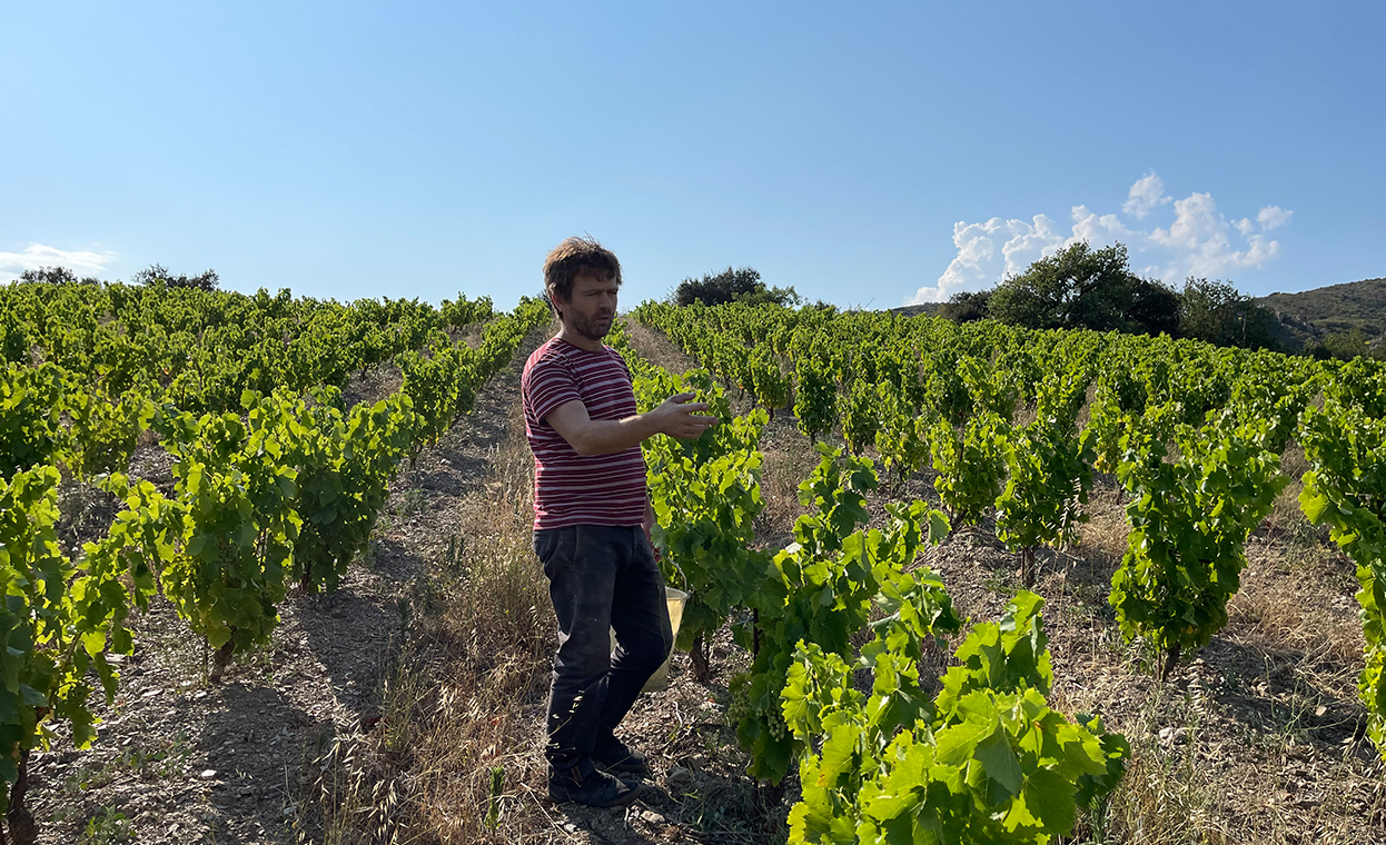 ロワールでワインつくりをしていたシリル・ファルが、南仏のルーション地方ラトゥール・ドゥ・フランスに移り住みワイン造りを始めたのは2002年のこと。ラトゥール・ドゥ・フランスはスペインとの国境にほど近い町、ペルピニャンの西にある小さな村です。ドメーヌ名は、CLOS DU ROUGE GORGE(クロ・デュ・ルージュ・ゴルジュ)。ルージュ・ゴルジュはのど元の赤い小さな鳥の名前から来ています。シスト土壌からなる5haの畑を丁寧に、自然循環を大切にしながら畑仕事をしています。点在する区画は標高200〜250mに位置しており、古樹のカリニャンやグルナッシュ、サンソー、マカブーなどが植えられています。ラトゥール・ドゥ・フランスという日本では馴染みのない場所で造られるワインですが、彼のつくるワインは私たちには南仏で出会った指折り数える素晴らしいワインの一つです。シリルは凝縮したタンニンのある、ある意味で南仏らしいワインをつくりたいとは思っていません。ブドウの樹の根が地中深くに張り、限りなくシンプルに「ミネラル」を液体に反映したワインを目指しています。人と大地とを繋いでくれるピュアな液体を造るためだけに、日々畑仕事と向き合います。根が1cmでも深く地中に根を張れるように、彼は日々知識を蓄え、畑と向き合い、経験を積み重ね、それをさらに畑にフィードバックしていきます。暑い南仏では馬で優しく耕すことで土に空気が入り熱を吸収しずらくなるそうです。畑に冷涼感や水気を残す工夫を積み重ねています。誰からも愛される人柄のシリルですが、決して自分から外に出るタイプの人ではなく、フランス各地で開催される試飲会にもほぼ参加することがありません。深く深く掘り下げる奇才変人とも呼べる存在かもしれませんが、その誠実な人柄とストイックな畑仕事とワイン造りは、多くの生産者やカーヴィストから絶大な信頼を得ています。素晴らしい生産者がひしめくルーション地方にあっても孤高の存在とも呼べる、誇り高いヴィニュロンであり、液体もまた唯一無二のものだと感じています。南仏の照りつける太陽や凝縮したブドウ...といった外的なテロワールはそのミレジムを反映する要素として存在し、本質として地中深くのミネラルが美しく、甘美を持って液体に宿っています。会うたびに畑に出てすべきことがたくさんある、サロン(試飲会)や人と会う時間が惜しいんだとシリル。ペイザン(農家)としても本質を求める姿が印象的であり、脇目もふらず探求し、さらなる先を見つめ続けるシリル。彼の在り方に尊敬の念を心から抱かずにはいられないのです。