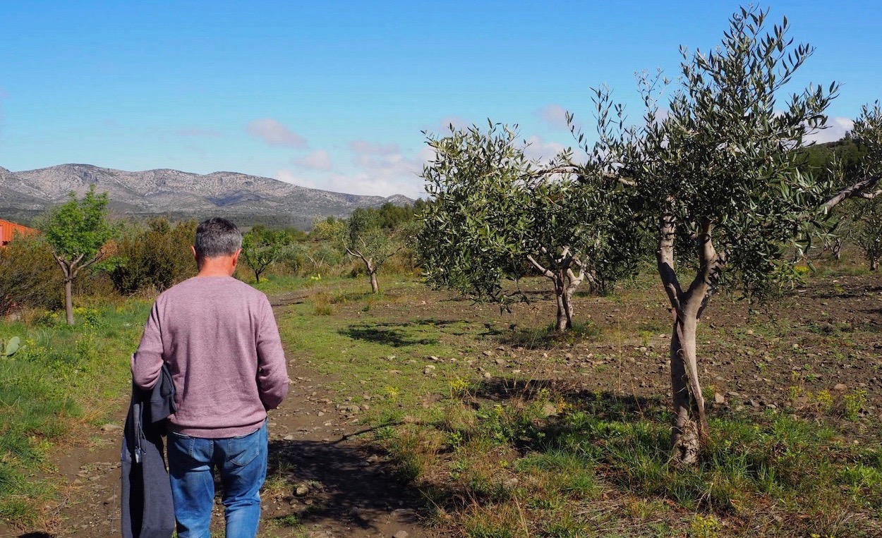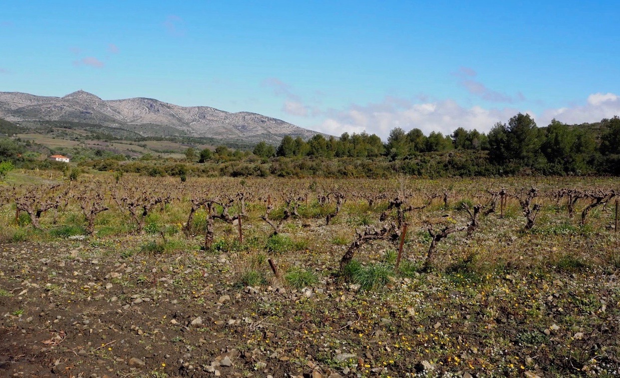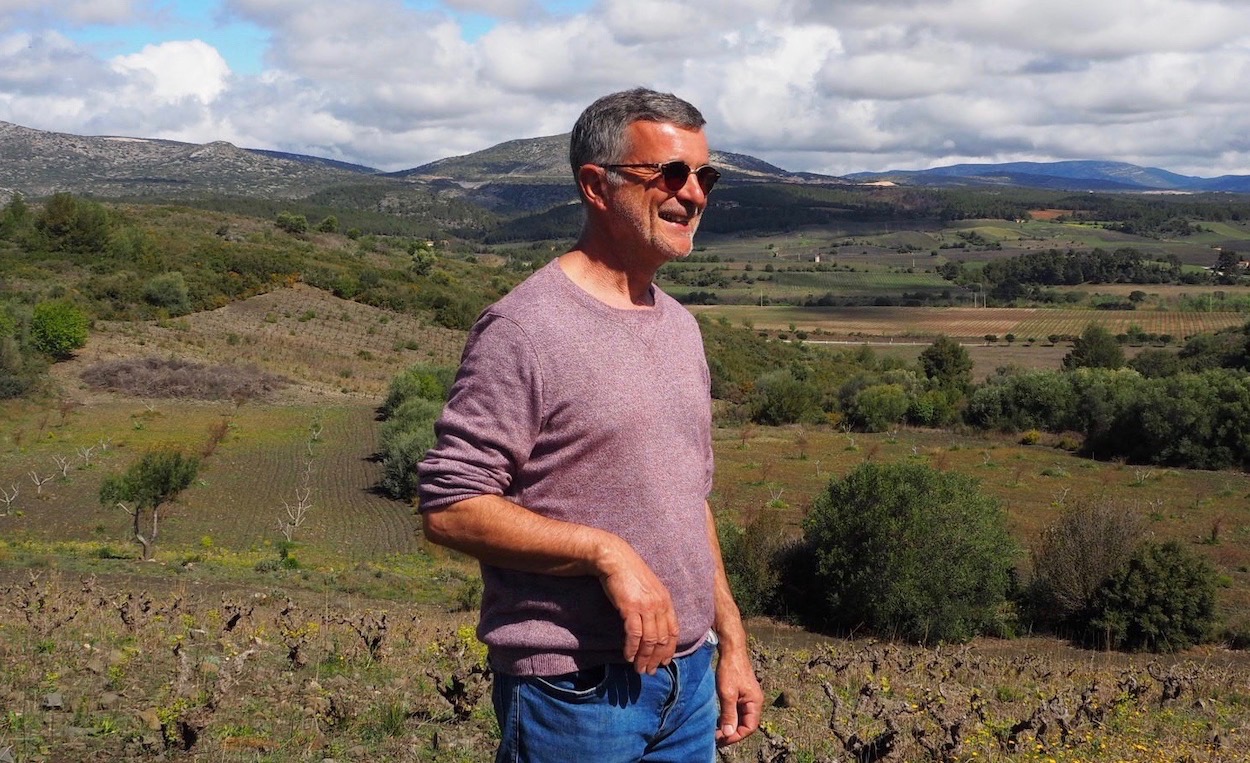 ドメーヌ・アマガの「アマガ」はカタルーニャ語で「隠れる」の意味。当主のピエール・ダノワは長らく世間から隠れるようにして、ルスィオン地方の山岳地帯でオリーブやイチジク、ブドウを育てきました。彼のオリーブ園やブドウ畑はすべて彼の家の裏に広がっていて、すべての木は1981年、彼が19歳の時から少しづつ彼自身が植えたもの。元々はブドウを売っていましたが2006年から自分自身でワインを造り始めました。花崗岩とシストが入り混じった土壌で起伏に富んだ広い畑は所々が急な斜面で大変な労力がかかる場所もあります。ワインだけでなくブドウジュース、イチジクジュース、オリーブオイル、ヴィネガー、蜂蜜などを造っていて、それらは、自分で消費することを前提として造られた生産量も少ない手造りのものばかりです。ワイン畑は3,5ha、その他のオリーブやイチジクなどの畑で10haほどあります。奥さんのベロニックと夫婦揃ってベジタリアンの二人は、口にするものへのこだわりをしっかり持っていて、自分たちで丁寧に大切に育てたものが一番美味しく安全に食べられると言います。実際に彼らが造るジュースや水を撒かずに端正に造られたオリーブオイルは濃密で目がハッとするほど美味しいものです。近隣の農家の人たちも、彼らの造るジュースやオリーブオイルを誰にも教えたくないほど。彼らの造るものはピュアで誠実なものばかりです。ワインは、赤も白もプレス機は使わずに、溢れ出すフリーランスジュースとプレス代わりに足で軽くピジャージュ(櫂入れ)したジュースのみを合わせたなんとも贅沢な液体。口当たりがやわらかくピュアな果実味がなんともみずみずしく口の中に広がります。ナチュールとは何だろう、そもそもオーガーニックとは?、彼らが彼ら自身のために造るワインは、そんな問いに対しての究極に贅沢な答えのように感じます。ピエールの強いこだわりの元に生まれる、この上なく贅沢な液体は、私たちにとってももちろん贅沢なもので、近隣の人たち同様に、私たちも内緒にしておきたいほどに愛おしい造り手です。ちなみに50〜60年代のフランスのシャンソン好きなピエールは、キュヴェの名前にしばしば彼の好きなシャンソンの曲名をつけています。