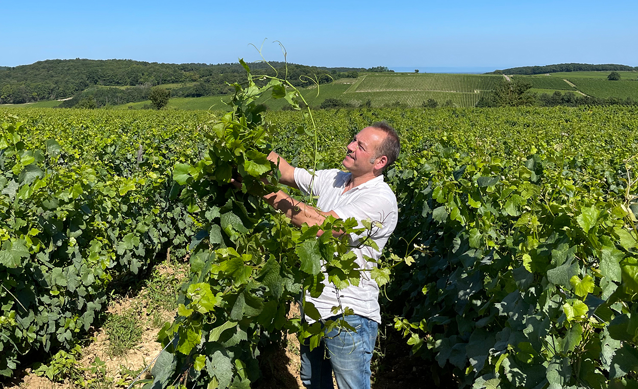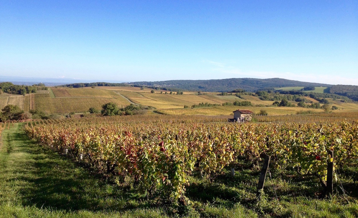 ブルゴーニュ地方マコンの情熱のあふれる造り手、時に鬼才と呼ばれる生産者ジュリアン・ギィヨ。ジュリアンの持つ畑、Clos des Vignes du Maynes(クロ・デ・ヴィーニュ・デュ・メイヌ)は、クリュニー修道院が910年に植樹した畑で、マコンの中でも一際長い歴史を持つドメーヌです。1954年、ジュリアンの祖父ピエールが当時2haあったクロ・デ・ヴィーニュ・デュ・メイヌの一枚畑を修道院から購入したのがドメーヌの始まり。ピエールはフランスで初めてビオロジック栽培を取り入れた生産者でもあります。ピエールの息子アランはその哲学を継承し、有機で造られたワインのエチケットには見慣れたビオロジックマークの考案に携わった人でもあります。ジュリアンはドメーヌの3代目になります。クロ・デ・ヴィーニュ・デュ・メイヌの畑は、910年以降、一切の化学肥料が撒かれることなく、今日の今日まで育てられて来た稀有な畑です。元々2haあった畑を中心に、現在は7haの一枚畑を持っています。ジュリアンは土壌や樹齢、品種ごとに区画化し、それぞれの特徴をしっかり把握しています。1998年からビオディナミに転換されました。なだらかな斜面の一枚畑は訪問するたびにエネルギーに満ちていて、ブドウの根は地中奥深くまで張りめぐり、素晴らしいミネラルが液体に溢れています。ジュリアンは歴史と肩書きにとらわれる事なく、自由なスタイル、湧き出るたくさんのアイデアで、素晴らしいワインを造っています。クロ・デ・ヴィーニュ・デュ・メイヌの畑がある丘の最上部の森には、かつて修道院の時代から植えらたブドウ畑があったのですが、1980年代後半にフランス全土を襲ったフィロキセラの被害にあい、それ以降、放置され森に侵食されてしまいました。ジュリアンは、この森を切り開き、新たにブドウを植え、クロ・デ・ヴィーニュ・デュ・メイヌの最高の区画ともいうべき畑"シャサーニュ"をもう一度現在に復活させました。森を切り開き、ブドウを植えて収穫できるまで10年という歳月がかかりますが、そんな途方もない作業をジュリアンは笑顔でやってのけます。彼のエネルギーはどこから出てくるのか!?と驚くほどです。どんなワインに対してもポジティブにオープンに向き合い、テロワールを常に意識するジュリアンの感性から生み出されるワインは、ナチュラルでテロワールをしっかり感じられます。クリュニー修道院がワインを造っていた時代、彼らは畑に植えられたピノ・ノワール、ガメイ、シャルドネを混醸してワイン造りをしたそうです。その文献を頼りにジュリアンが2009年に修道院のお祭りのために造ったキュヴェ910は、瞬く間にその美味しさが知れ渡り、今では彼らのフラッグシップのワインの一つになっていて、ジュリアンの世界観・挑戦心を存分に感じられるワインです。現在はジュリアンの息子のオーギュストも畑仕事を手伝ってくれています。伸び伸びと元気ハツラツなオーギュストはジュリアンにそっくりです。ピノのトップキュヴェ、ブルゴーニュ・ルージュ キュヴェ・オーギュストは子供の名前から付けられました。ナチュラルワインの美味しさ、ブルゴーニュの歴史やテロワール、造り手の情熱をめいっぱい感じられるクロ・デ・ヴィーニュ・デュ・メイヌ。心から素晴らしいドメーヌです。