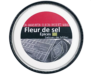 Fleur de sel nature 100g フルール・ド・セル・ナチュール 原材料:海水100% 塩の収穫前、海水が2〜2.5cmほどになると塩田の奥の海水の表層に浮かび上がるフルール・ド・セル「塩の華」と呼ばれる結晶を大きなトンボで丁寧にすくい取りつくられる塩。生産量はごくわずかでレ・サリーヌ・ド・ミラックでは生産量の9%ほどだそうです。ミネラルが美しく繊細に凝縮した塩です。 |