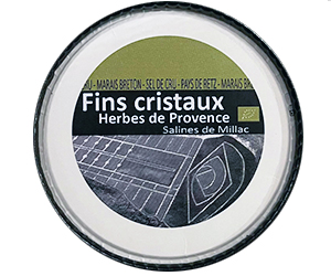 Fins cristaux herbes de Provence 100g ファン・クリストー・エルブ・ド・プロヴァンス 原材料:海水94%、ハーヴ・ド・ブロヴァンス6% ファン・クリストーとハーヴ・ド・プロヴァンス(ローズマリー、タイム、セイボリー、オレガノ、バジル)を配合した塩です。ハーヴ・ド・プロヴァンスはすべてオーガニック素材。豚肉や鳥肉、ラタトゥイユをはじめとするトマト料理全般に合います。 |
