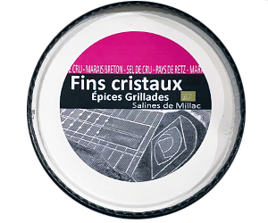 Fins cristaux nature 120g ファン・クリストー・ナチュール 原材料:海水100% 収穫されたグロ・セルを砕かずにふるいにかけて細かい粒のみにしたものがファン・クリストー(クリスタル状)と呼ばれる塩です。グロ・セル同様のミネラルと旨みを残した贅沢な塩で、ステーキに直接振りかけるのみいいですし、ミルやすり鉢で砕いて使うことで幅広く使うことができます。 |